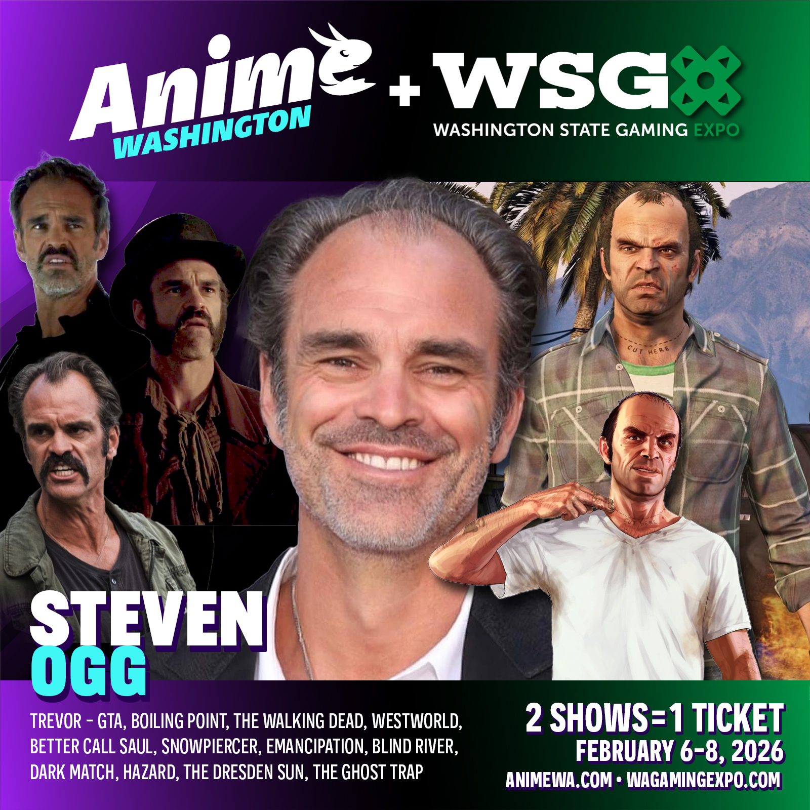 Steven Ogg is an actor and voice artist renowned for his intense, charismatic performances in video games, animated series, and on-screen roles. He gained widespread acclaim for providing voice, motion capture, and performance for Trevor Philips in the landmark 2013 game Grand Theft Auto V (and Grand Theft Auto Online), earning critical praise, awards like the New York Videogame Critics Circle’s Best Overall Acting, and numerous nominations for his chaotic, unpredictable anti-hero portrayal.
